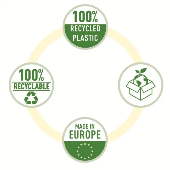 100% reciclata si 100% reciclabila, inclusiv ambalajul. Folie de protec?ie Esselte A4. Embosata, PP 70 microni. Folie de protectie Esselte A4 nedaunatoare mediului, pentru folosirea zilnica, creata din material rezistent 100% reciclat PP. Perforatiile multiple de pe marginea foliei permite depozitarea documentelor in bibliorafturi sau caiete mecanice. Produsul poate sa fie refolosit si reciclat din nou. Foliile de protectie sunt ambalate in cutie de carton care este de asemenea 100% reciclata si reciclabila. Confectionat in Europa. Continut reciclat confirmat de UL.
